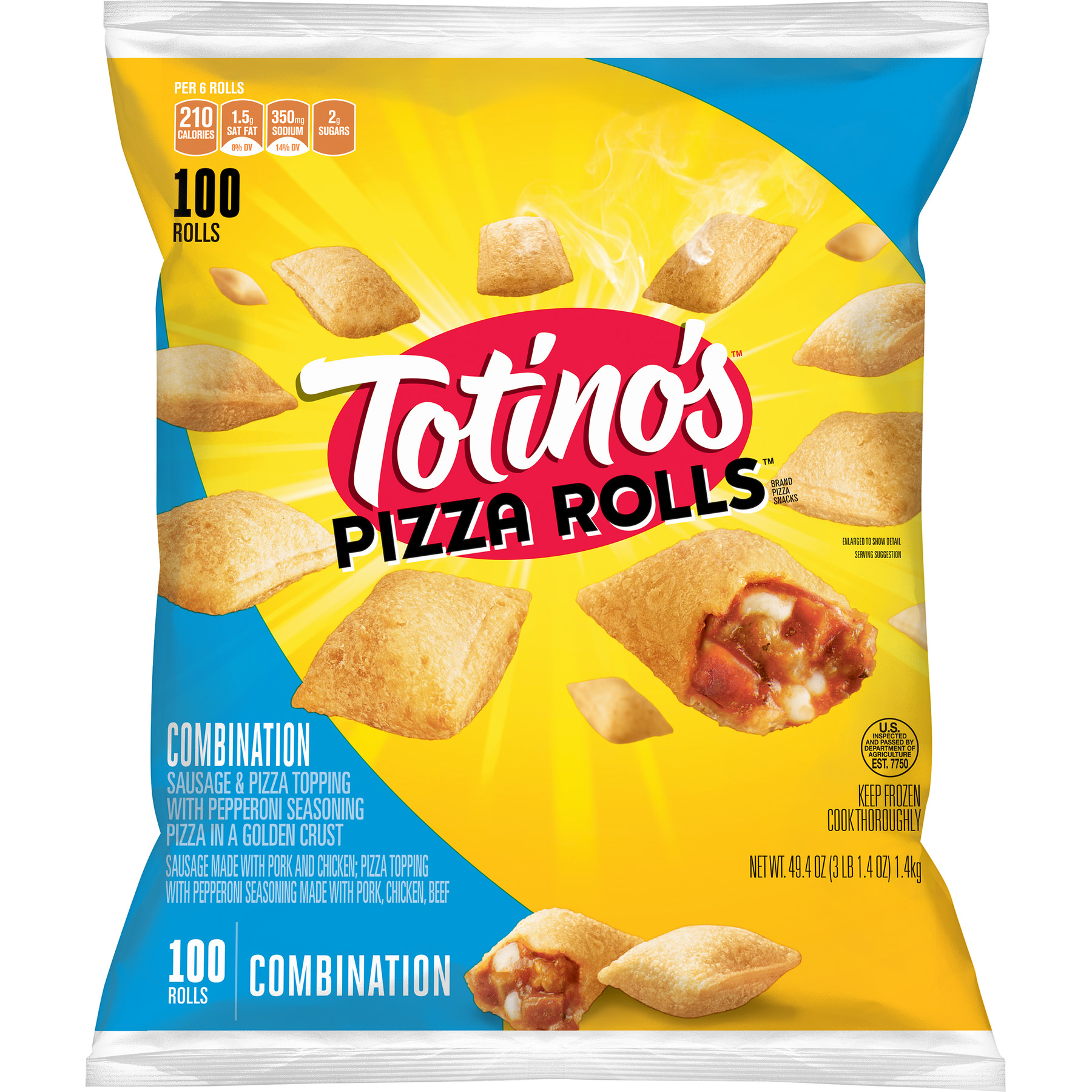 COMBINATION SAUSAGE & PEPPERONI SEASONED PORK, CHICKEN AND BEEF PIZZA TOPPING PIZZA IN A GOLDEN CRUST ROLLS, COMBINATION