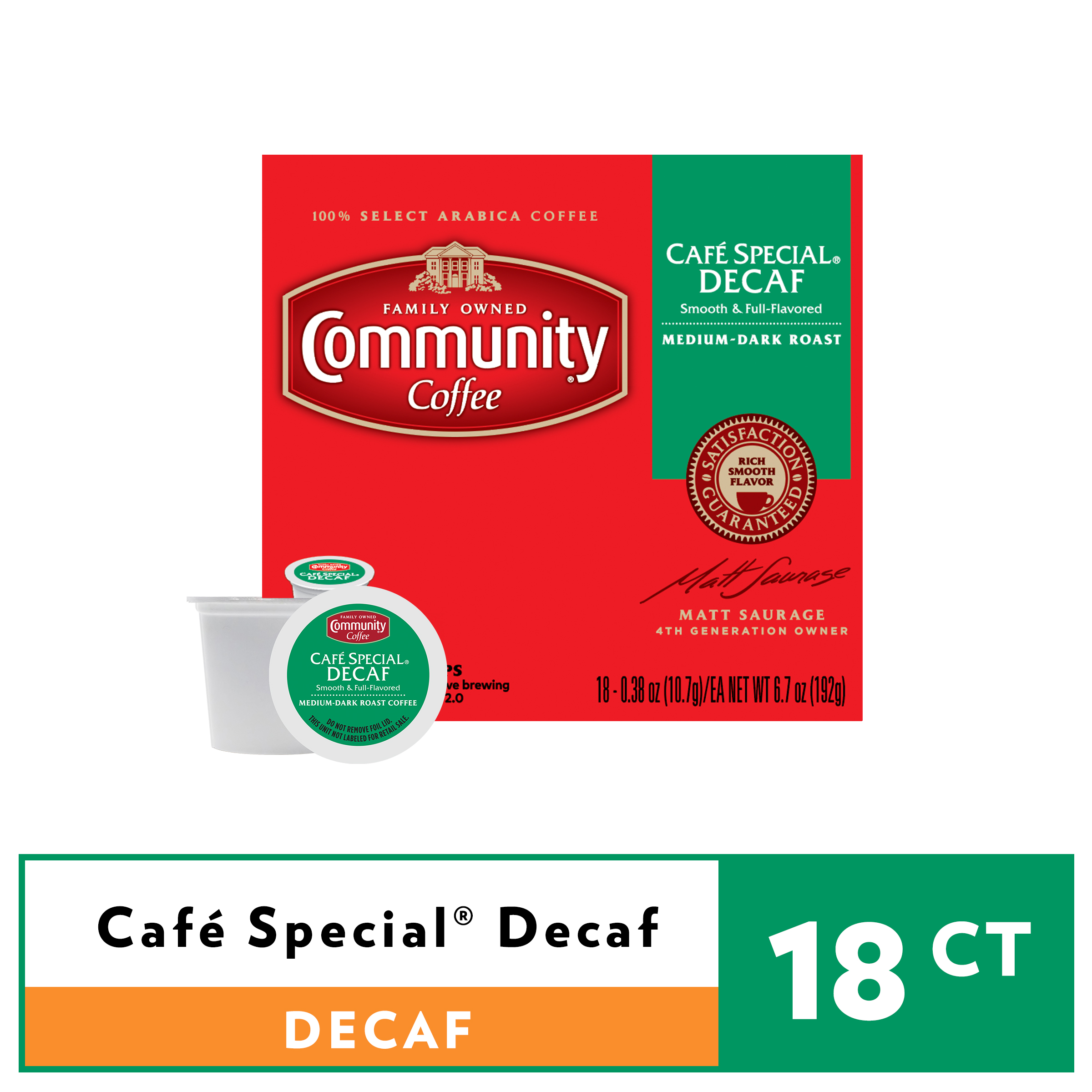 Community® Coffee Café Decaf Medium Dark Roast Coffee Single-Serve Cups 18 ct Box Compatible with Keurig 2.0 K-Cup Brewers
