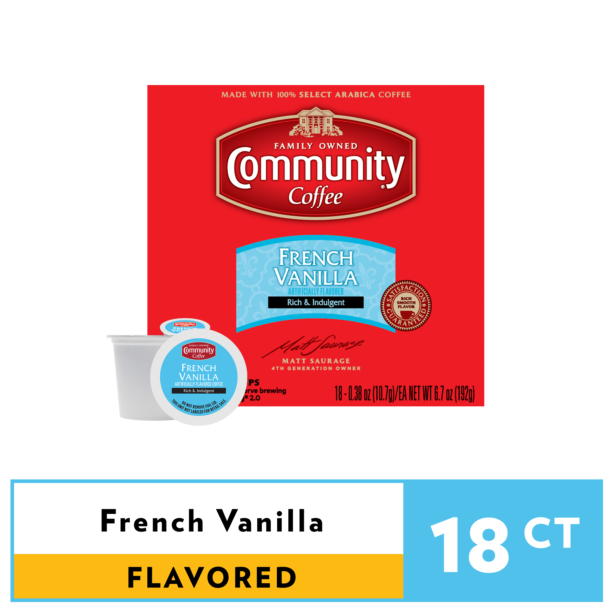 Community® Coffee French Vanilla Coffee Single-Serve Cups 18 ct Box Compatible with Keurig 2.0 K-Cup Brewers