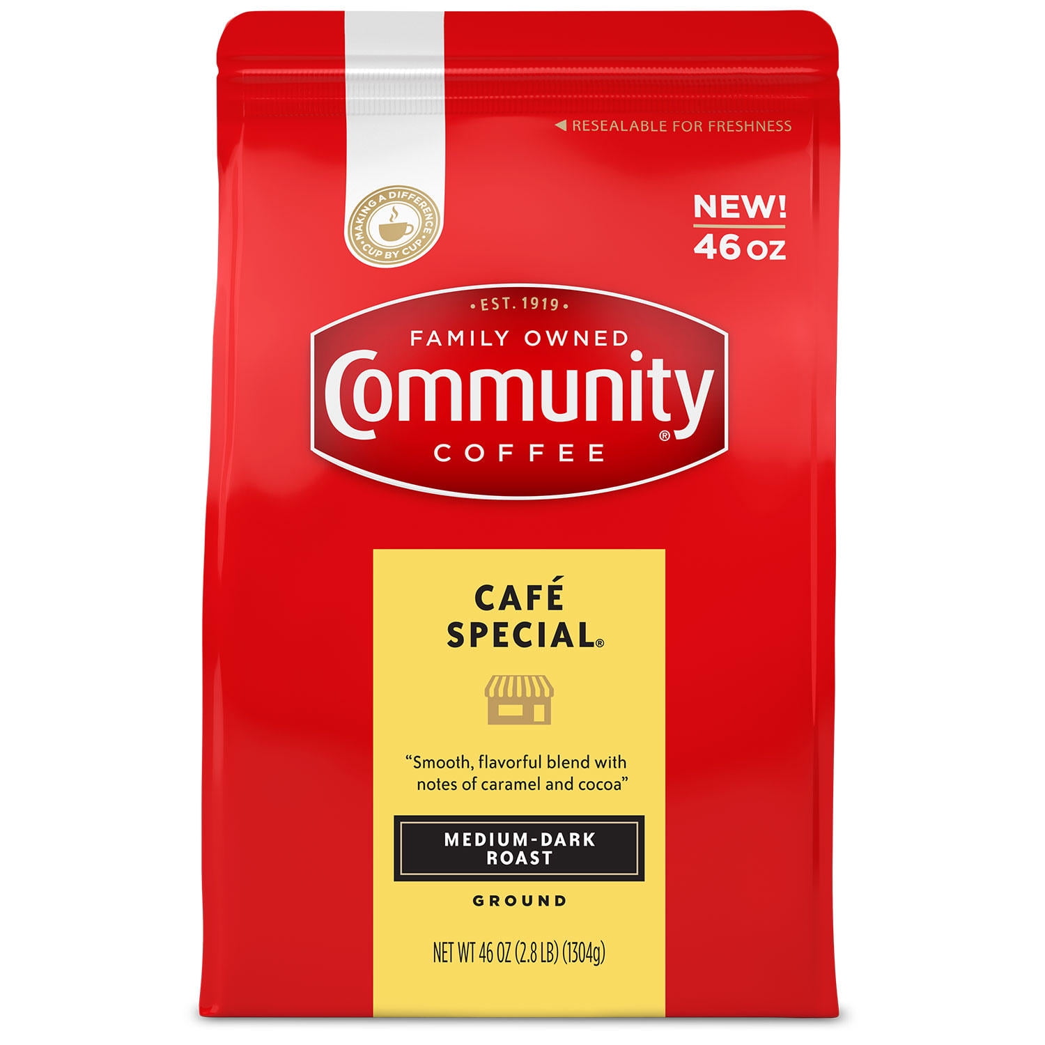 Community Coffee's Café Special blend is designed to highlight coffee beans known for their sweeter profile. After harvesting, the coffee is allowed to dry naturally in the sun, locking in flavor unique to South and Central America. They roast this coffee to a medium-dark color to bring out notes of caramel and cocoa, giving you the taste of your favorite café right at home