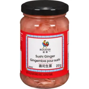 Ginger, Water, Salt, Acetic Acid, Citric Acid, Aspartame (4,75Per 5 G, Contains Phenylalanine), Potassium Sorbate, Allura Red