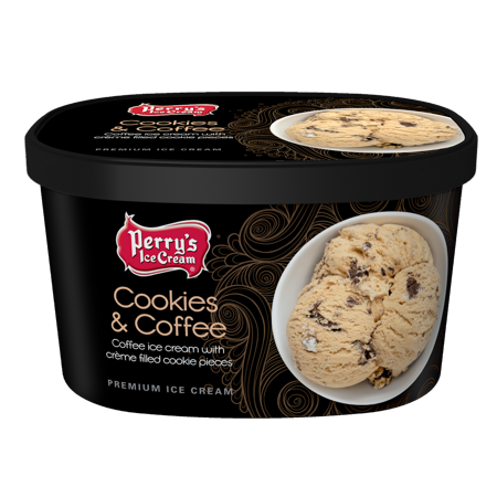 COOKIES & COFFEE PREMIUM ICE CREAM WITH CREME FILLED COOKIE PIECES, COOKIES & COFFEE