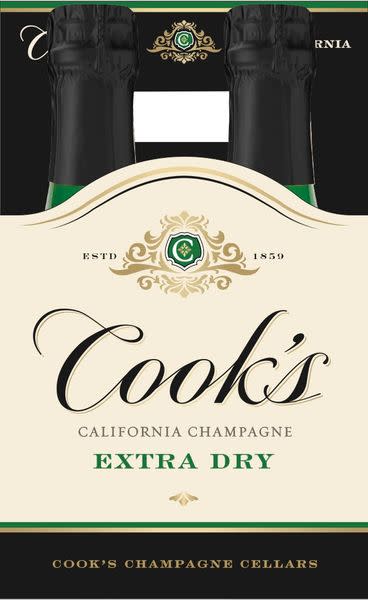 Cook's California Champagne Extra Dry, White Sparkling Wine, 4 pk 187 mL Bottles