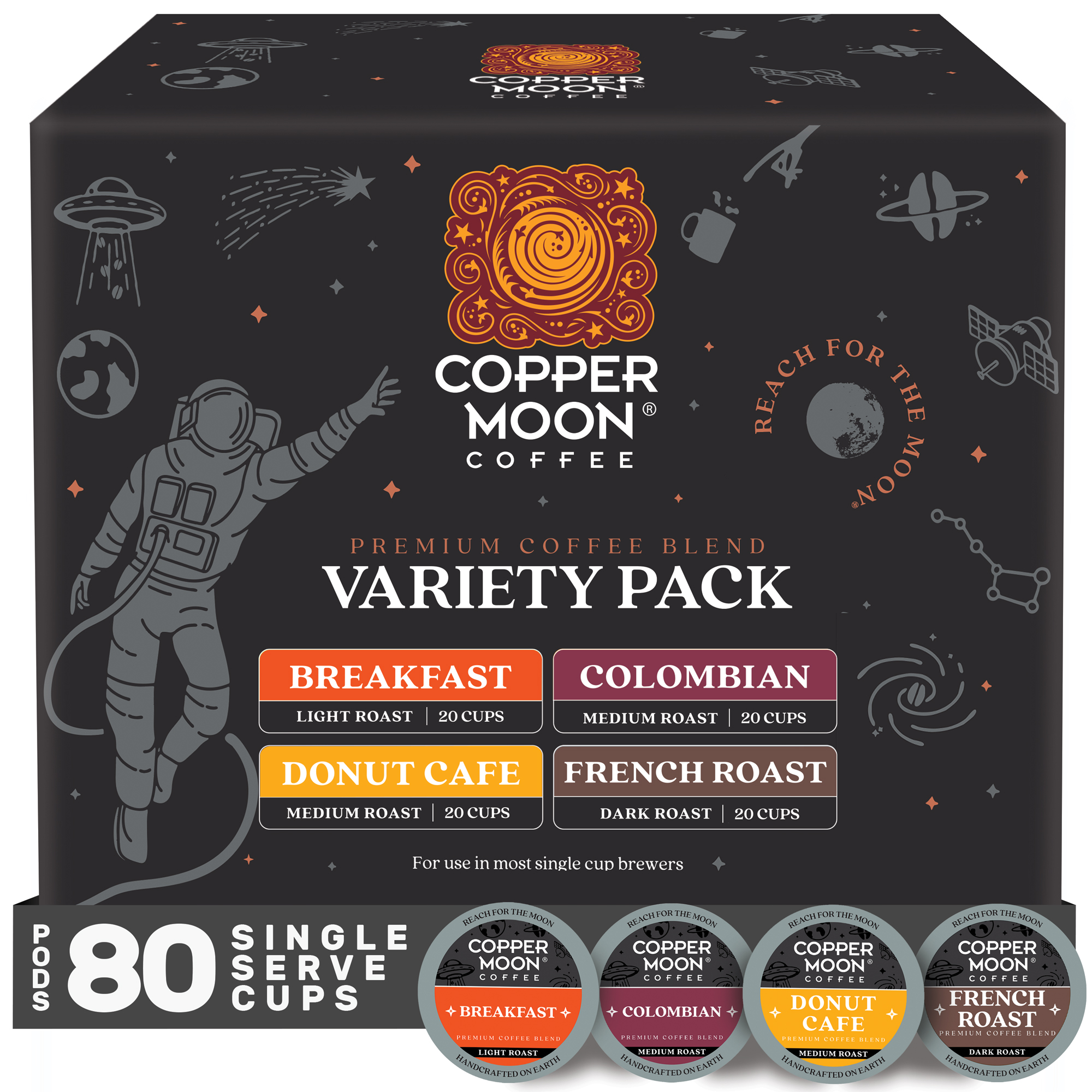 Copper Moon Coffee Single Serve Pods for Keurig 2.0 K-Cup Brewers Variety Pack (20 Breakfast Blend, 20 Donut Café, 20 Colombian Blend, 20French Roast) 80 Count is available at 2 retailers