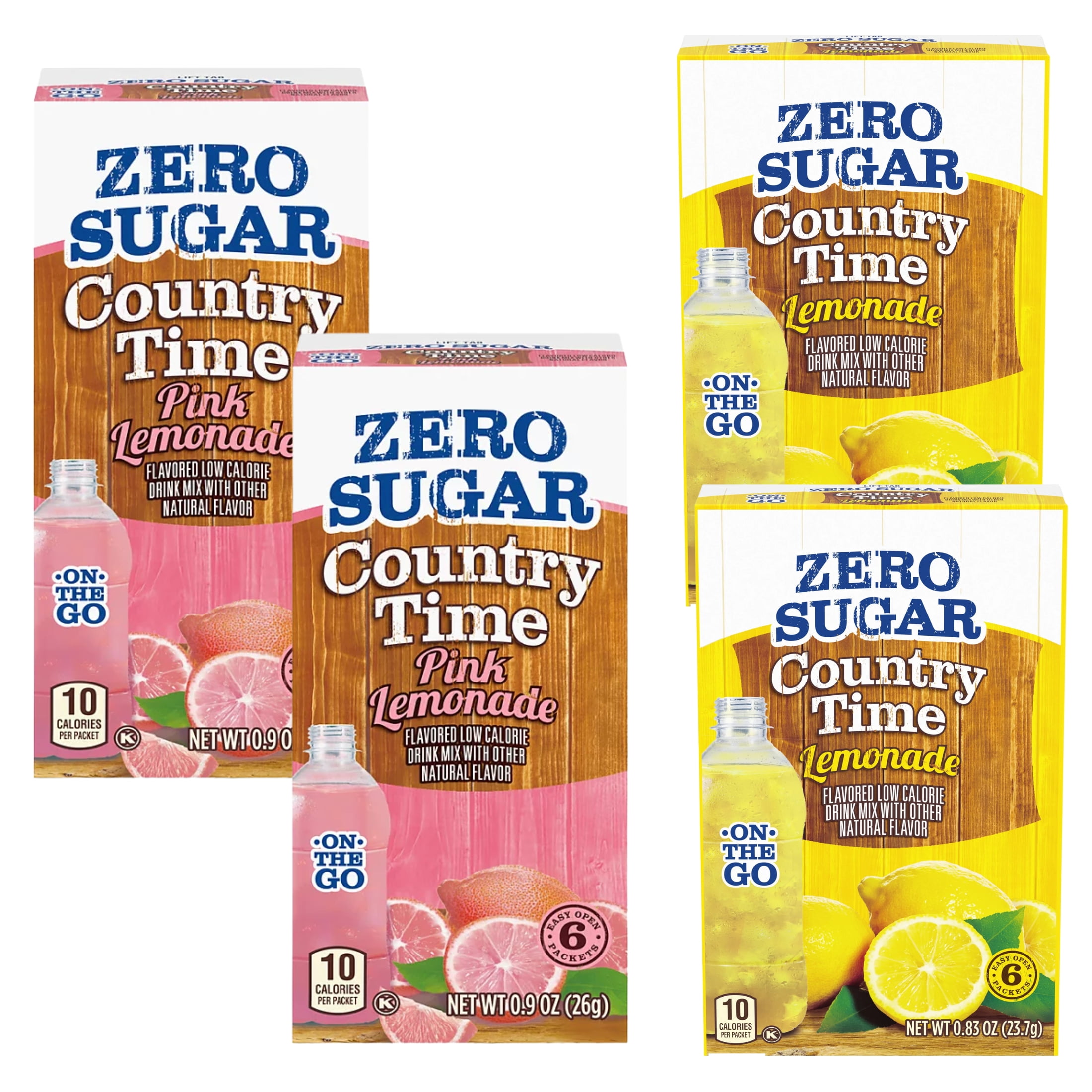 Country Time Singles To Go Powder Drink Mix Lemonade & Pink Lemonade Flavor Water Enhancer Zero Sugar Low-Calorie Powder Beverages for On the Go Picnic Camping 6ct each 4 Packs
