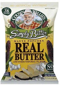 COUSIN WILLIE'S SIMPLY BETTER, MAUVE POPCORN, REAL BUTTER, REAL BUTTER