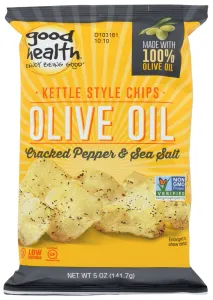 CRACKED PEPPER & SEA SALT OLIVE OIL KETTLE STYLE CHIPS, CRACKED PEPPER & SEA SALT OLIVE OIL