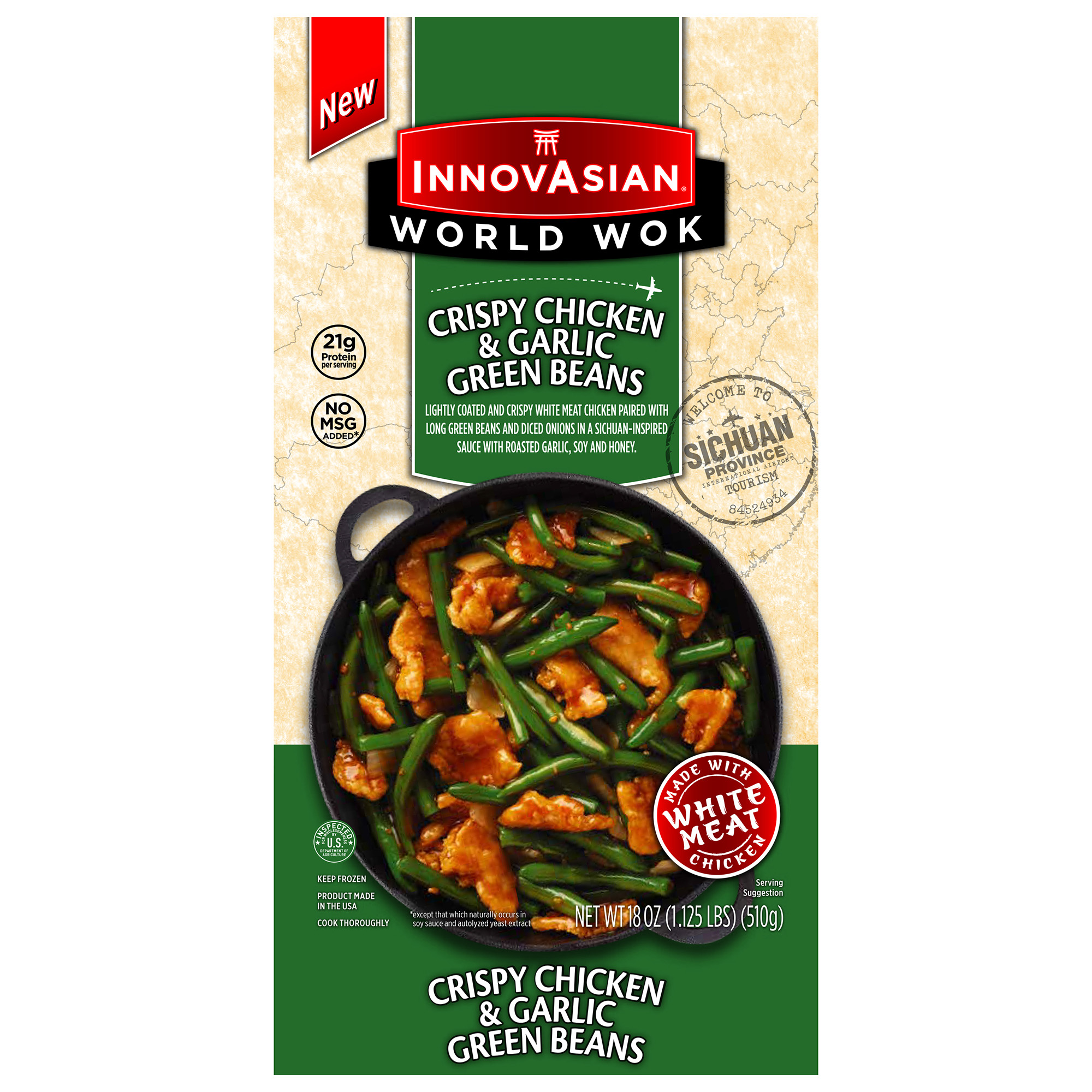 CRISPY CHICKEN & GARLIC GREEN BEANS LIGHTLY COATED AND CRISPY WHITE MEAT CHICKEN PAIRED WITH LONG GREEN BEANS AND DICED ONIONS IN A SICHUAN-INSPIRED SAUCE WITH ROASTED GARLIC, SOY AND HONEY, CRISPY CHICKEN & GARLIC GREEN BEANS is available at 2 retailers