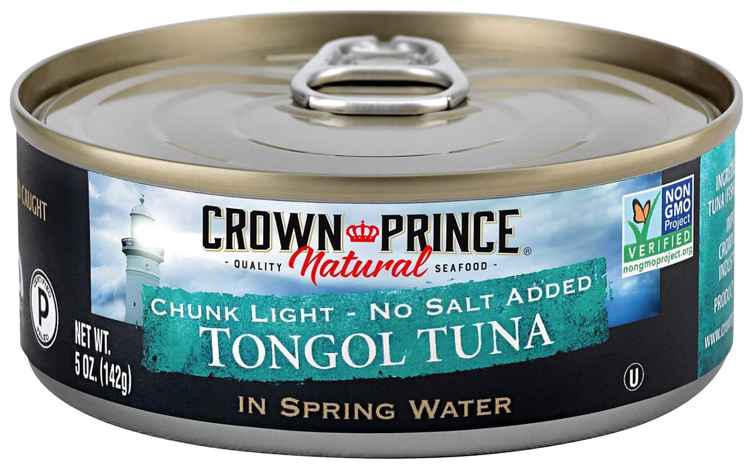 Crown Prince Natural Tongol Tuna, Chunk Light in Spring Water, No Salt Added, 5 oz Can