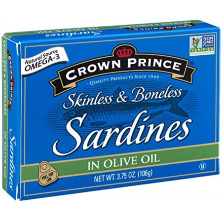 Crown Prince Skinless & Boneless Sardines in Olive Oil, 3.75-Ounce Cans (Pack of 12)
