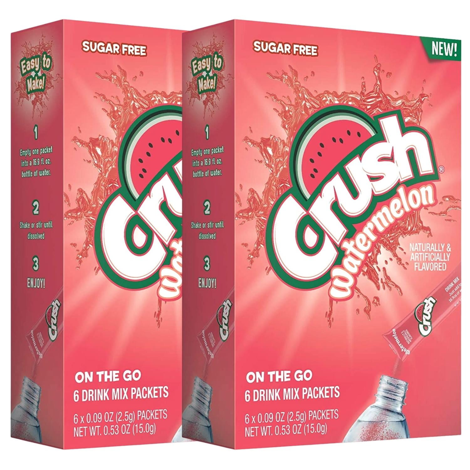 Crush, Watermelon Singles To Go Water Drink Mix, Sugar-Free Low-Calorie Water Enhancer Powder Sticks Beverages 2 Boxes - 6 Sachet per Box - 12 Total Servings