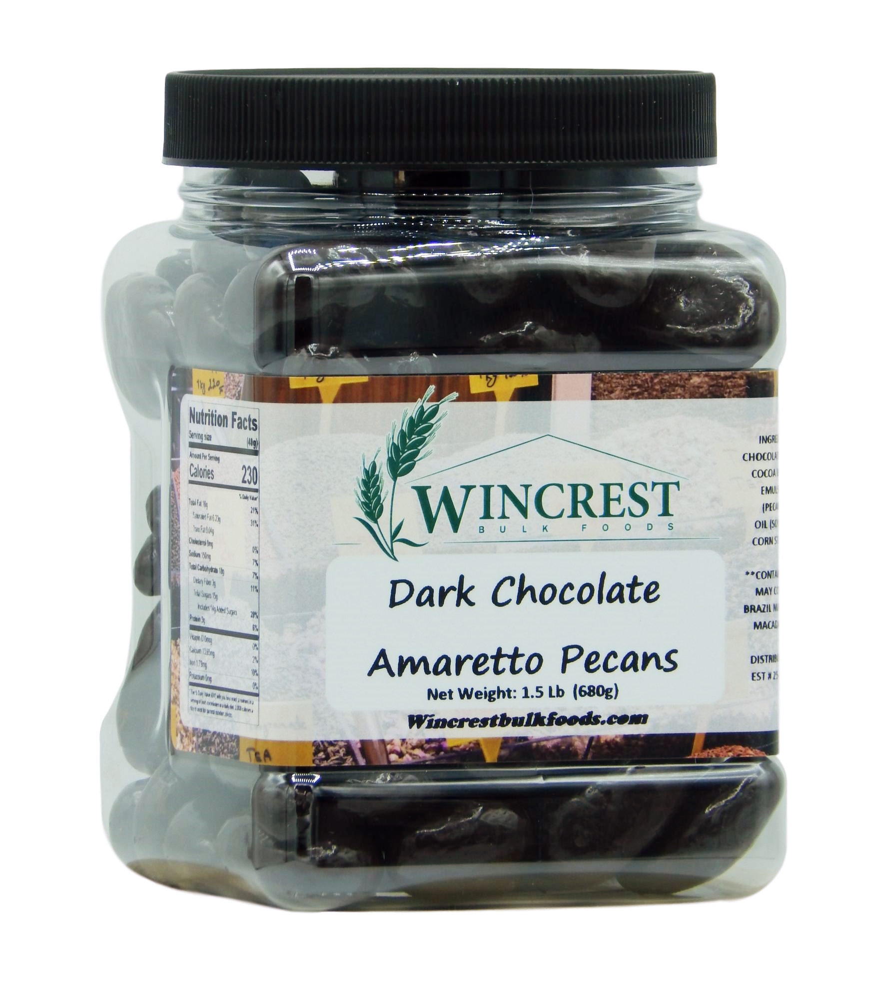 Dark Chocolate Amaretto Pecans - 1.5 Lb Tub