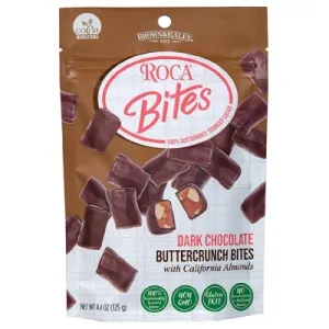 DARK CHOCOLATE BUTTER CRUNCH BITES WITH CALIFORNIA ALMONDS, DARK CHOCOLATE