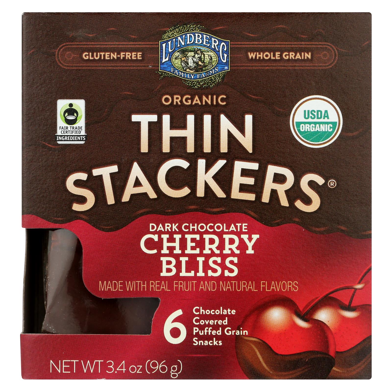DARK CHOCOLATE CHERRY BLISS ORGANIC CHOCOLATE COVERED PUFFED GRAIN SNACKS, DARK CHOCOLATE CHERRY BLISS