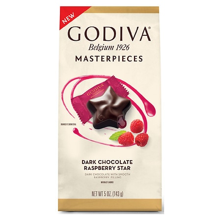DARK CHOCOLATE RASPBERRY STAR FLAVORED DARK CHOCOLATE WITH SMOOTH RASPBERRY FILLING, DARK CHOCOLATE RASPBERRY STAR
