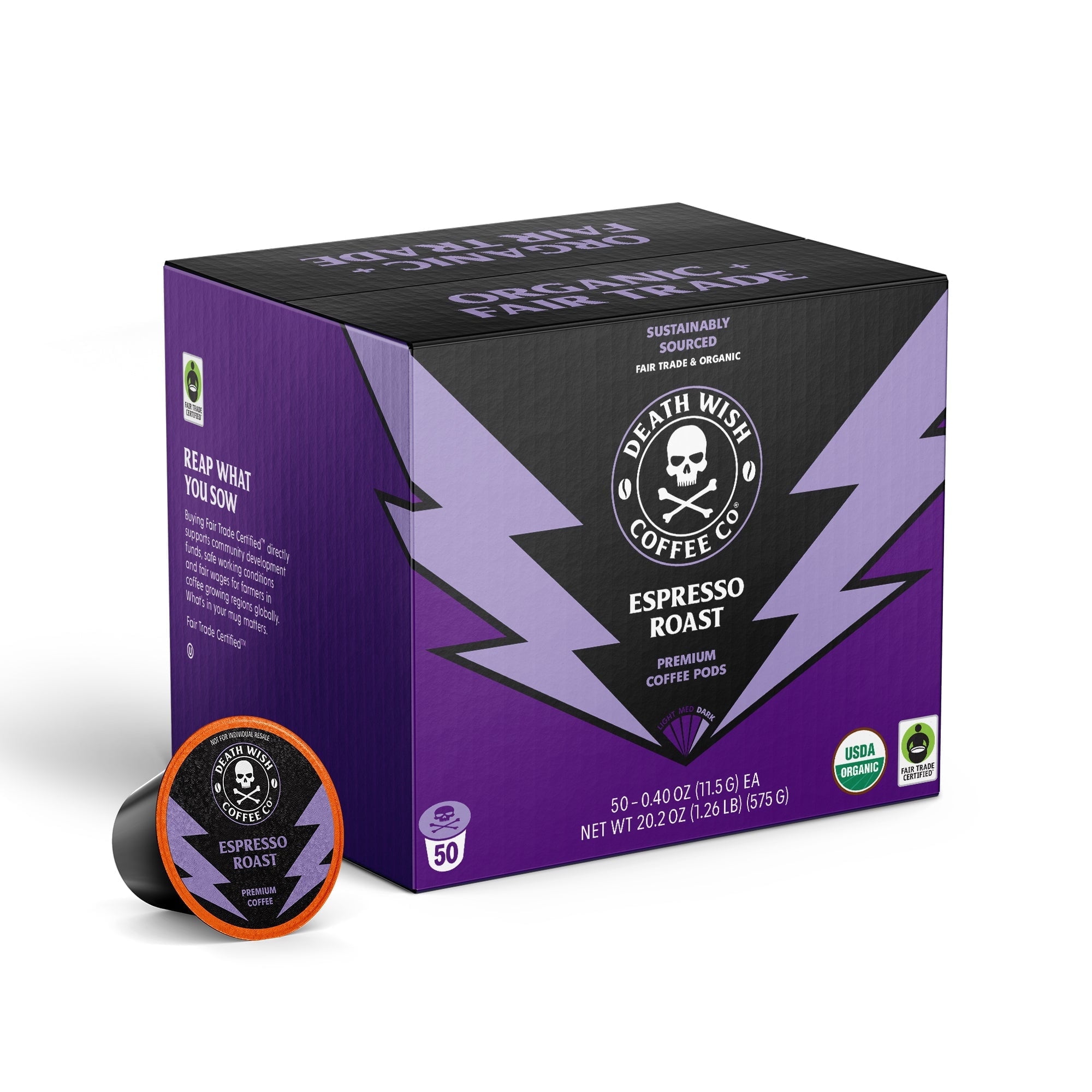 Death Wish Coffee, Organic and Fair Trade, Single Serve Coffee Pods, (Espresso Roast, 50 Count)