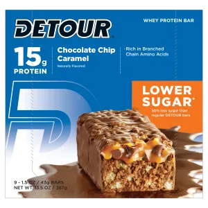 Detour Bar Lower Sugar Whey Protein Bar Chocolate Chip Caramel -- 9 Bars