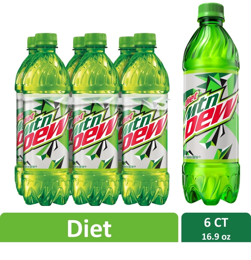 Diet Mountain Dew Zero Sugar Soda Bottles, 6 pk, 16.9 fl oz