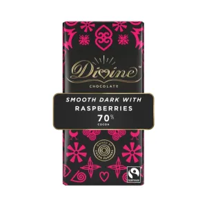 Divine Chocolate Smooth Dark With Raspberries 70% Cocoa