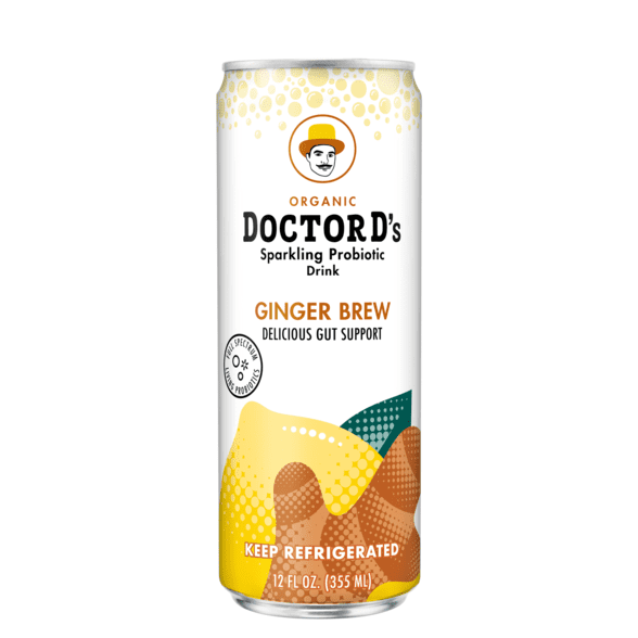 Doctor D’s Ginger Brew Sparkling Probiotic Drink, 12 fl oz Cans, 12 Pack