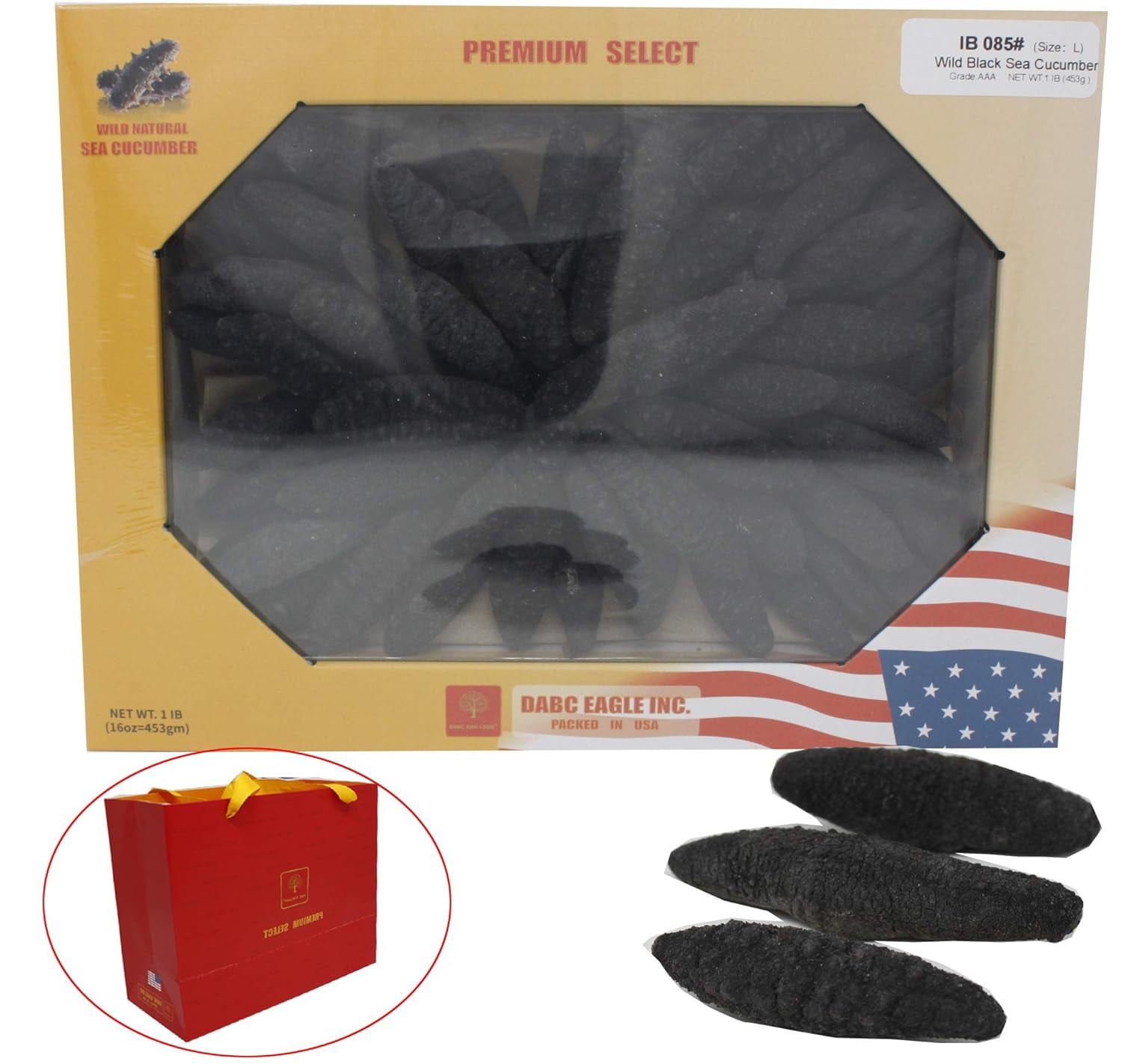 DOL 禮盒大包裝 Sun Dried Sea Cucumber,Wild Caught Deep Sea Glaciers,All Natural Nutritious,天然淡乾冰川野生海參 35~50pcs 16oz. (453g.)