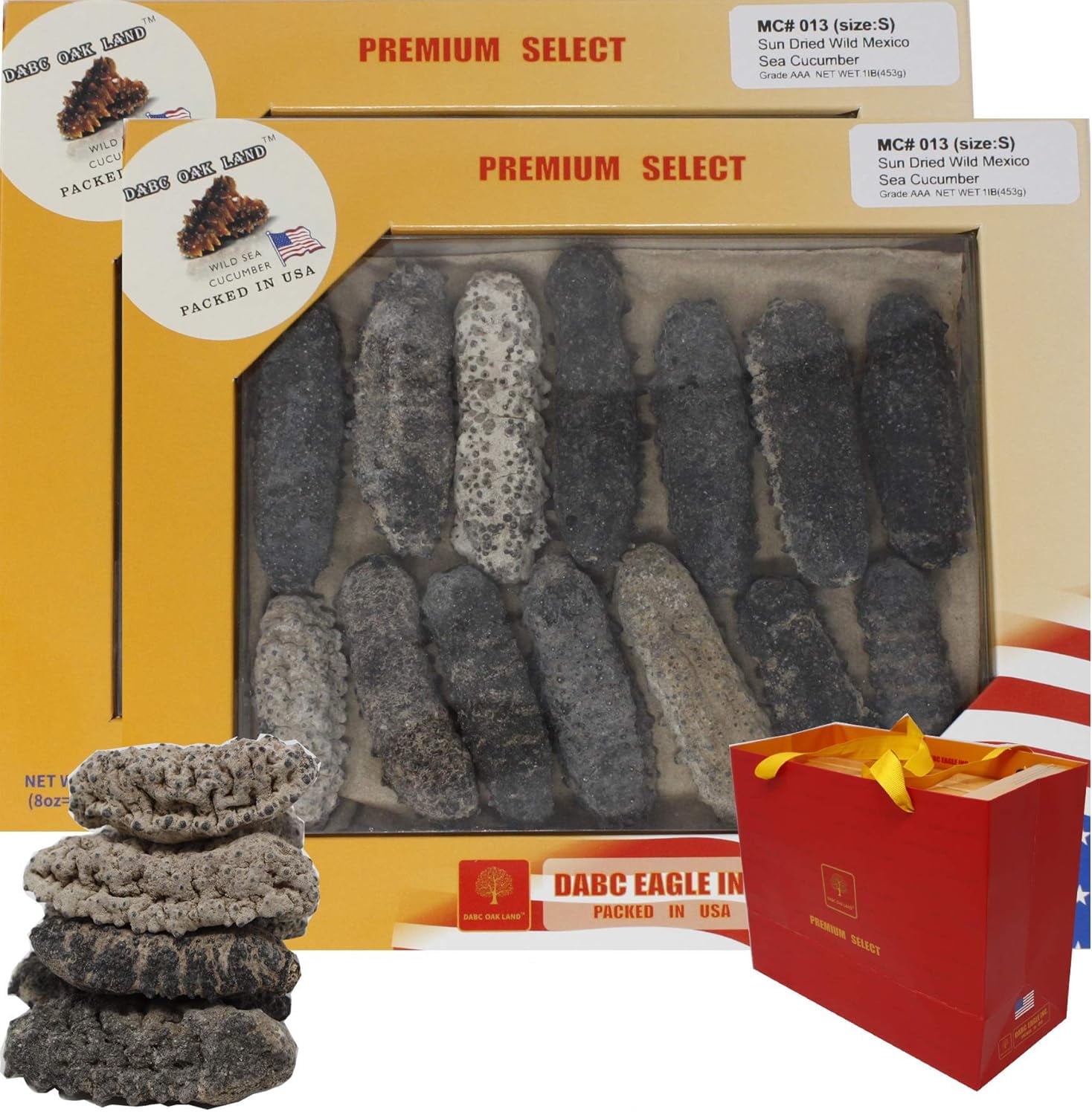 DOL Wild Caught,Sun Dried Mexico Black Pin Sea Cucumber All Natural Nutritious 高泡發墨西哥野生肥仔刺參 雙排刺參 墨西哥刺參 Sea Cucumbers In Gift Box (Small 8oz/box*2)