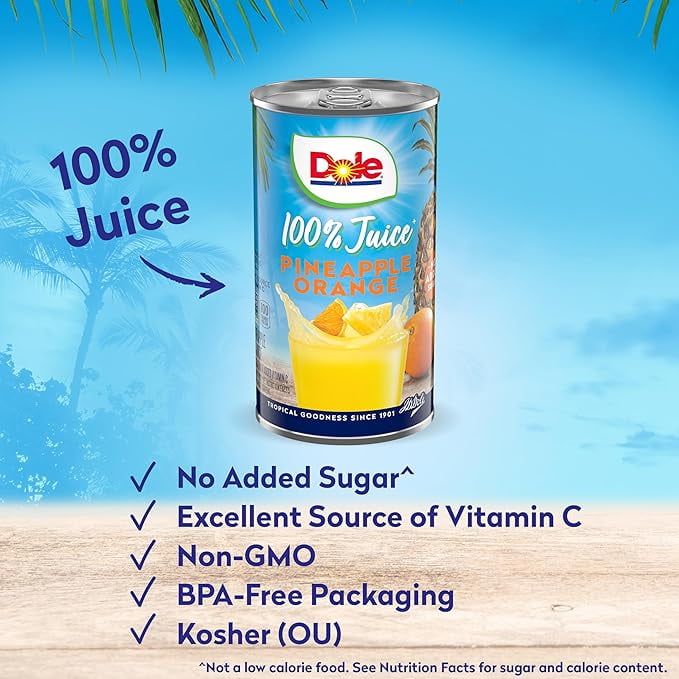 Dole 100% Pineapple Orange Juice, No Added Sugar, Excellent Source of Vitamin C, 100% Fruit Juice, 6 Fl Oz (Pack of 6),