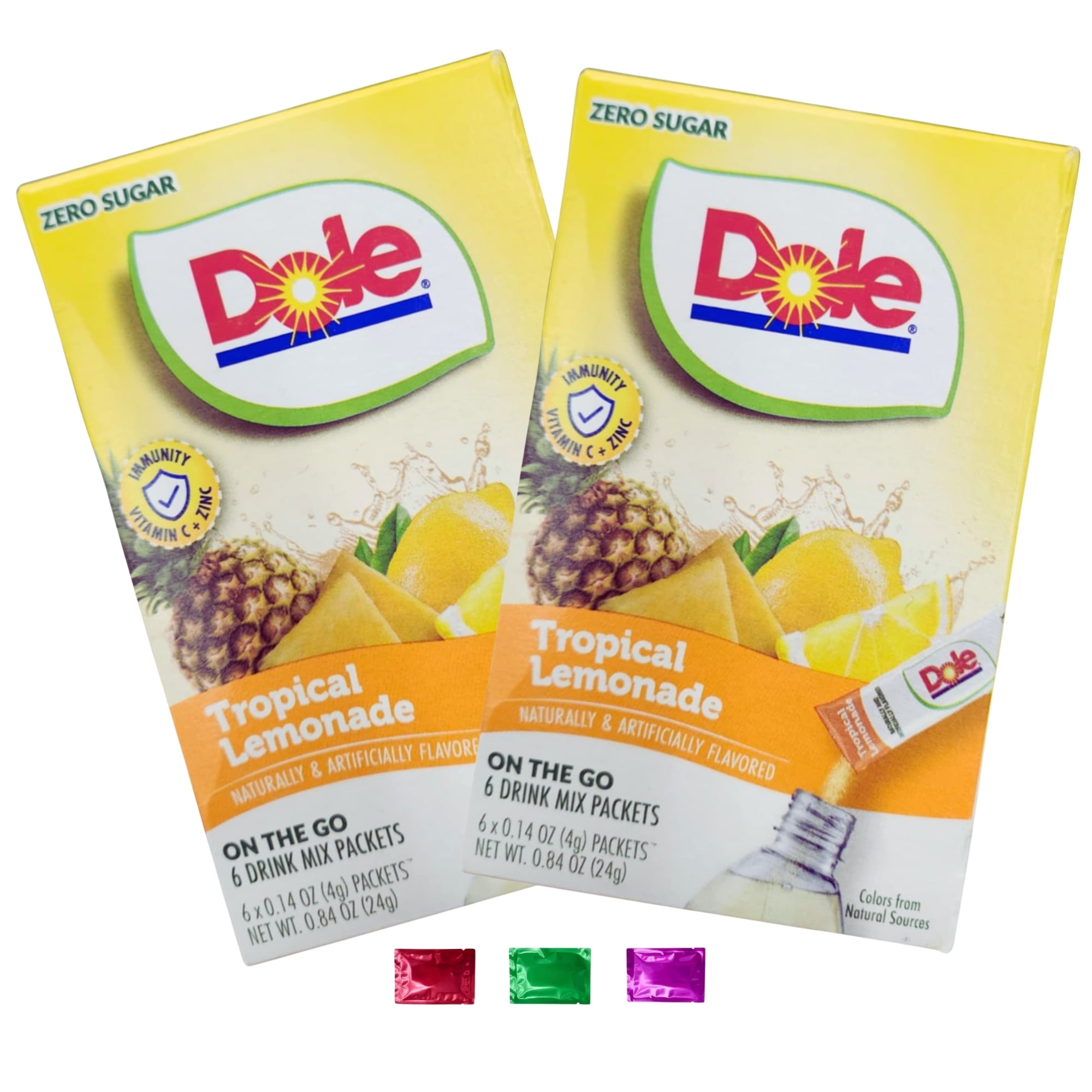 Dole Zero Sugar Tropical Lemonade Drink Mix Packets 12 Total Servings 2 Boxes, Refreshing On the Go Beverage with Snoep in Beperkte Oplage