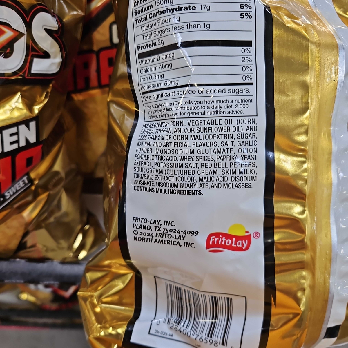 Calcium, Iron, Potassium, Corn, Vegetable Oil (corn, Canola, Soybean, And/or Sunflower Oil), And Less Than 2% Of Corn Maltodextrin, Sugar, Natural And Artificial Flavors, Salt, Garlic Powder, Monosodium Glutamate, Onion Powder, Citric Acid, Whey, Spices, Paprika, Yeast Extract, Potassium Salt, Red Bell Peppers, Sour Cream (cultured Cream, Skim Milk), Turmeric Extract (color), Malic Acid, Disodium Inosinate, Disodium Guanylate, And Molasses. Contains Milk Ingredients.