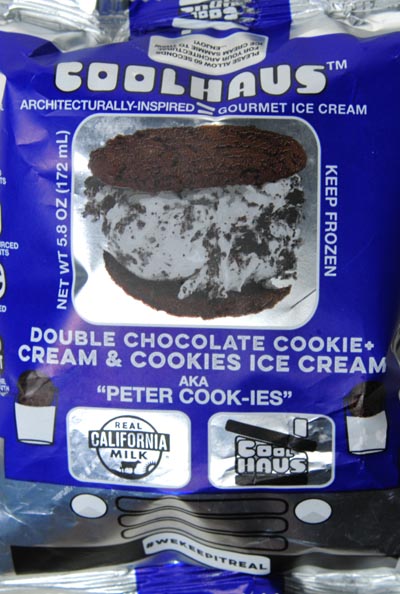 DOUBLE CHOCOLATE COOKIES + CHOCOLATE COOKIE CRUMB ICE CREAM WITH CHOCOLATE COOKIE CHUNKS SANDWICH, COOKIES & CREAM