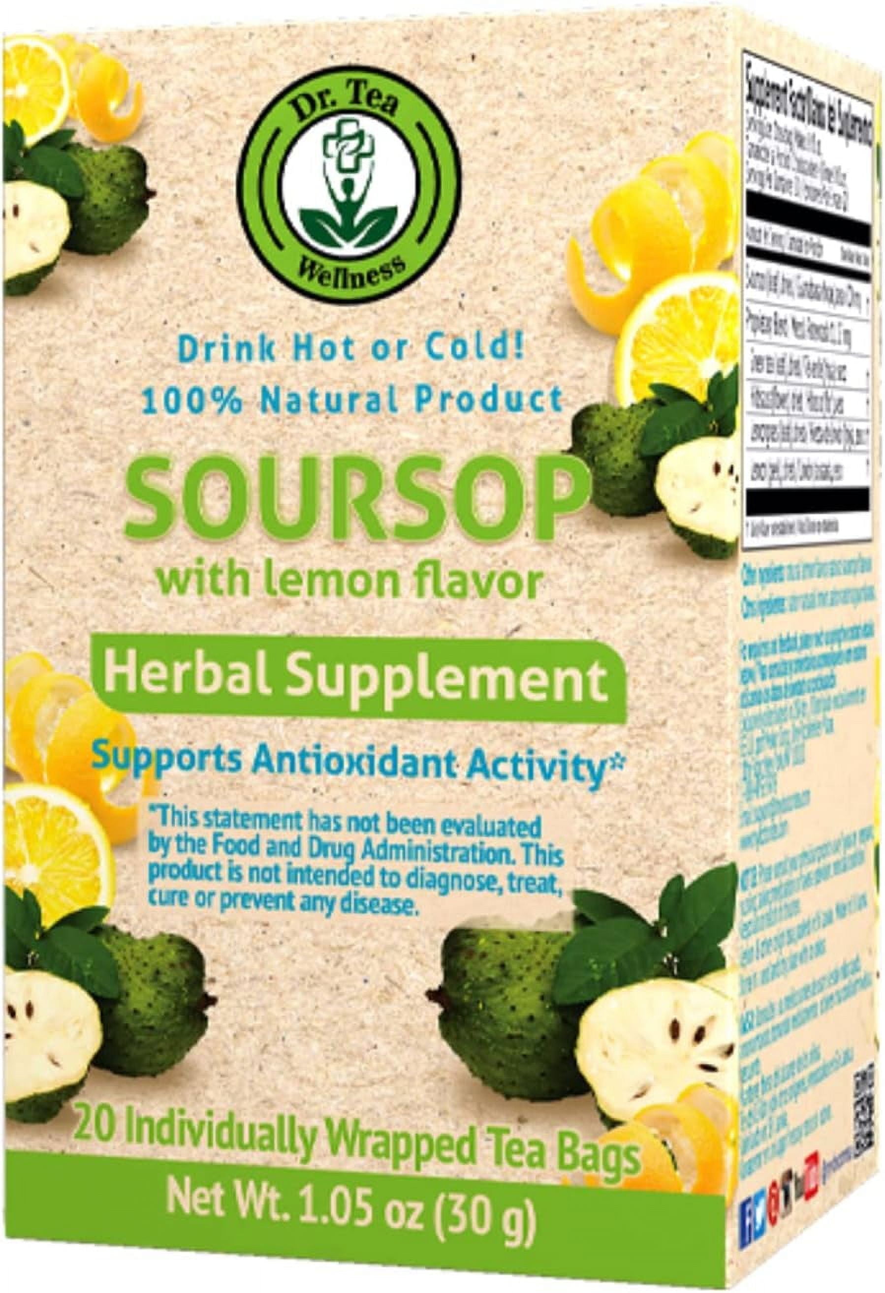 Dr. TEA Soursop Green Tea - Lemon Flavor -20 Tea Bags - Natural Wellness Cleanse Tea