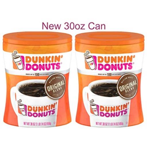 Dunkin' Donuts Original Blend Medium Roast Ground Coffee, 30 oz Can 2-Pack