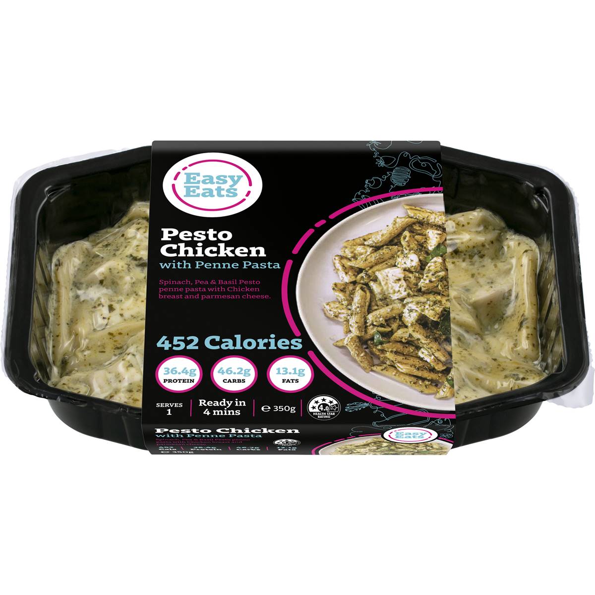 Penne Pasta (49%) (Durum Wheat Semolina), Halal Ce,rtified Chicken Breast (23%), Water, Pesto (7%) (F,resh Basil (55%), Canola Oil, Olive Oil, Sugar, Ca,shews, Parmesan Cheese, Salt, Acidity Regulator, C,itric Acid, Lactic Acid, Preservative: Potassium S,