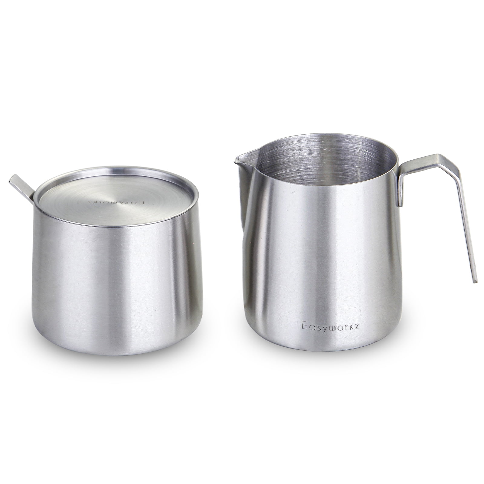 Easyworkz Stainless Steel 304 Creamer and Sugar Bowl with Spoon Coffee Serving Set Brushed Silver