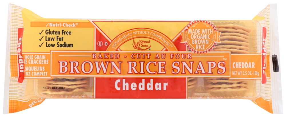 Edward & Sons Brown Rice Snaps Gluten Free Cheddar -- 3.5 oz
