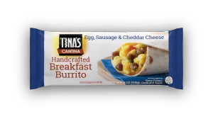 EGG, SAUSAGE & CHEDDAR CHEESE HANDCRAFTED BREAKFAST BURRITO, EGG, SAUSAGE & CHEDDAR CHEESE