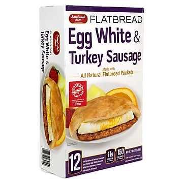 EGG WHITE CHEESE PATTY (EGG WHITES, PASTEURIZED PROCESS CHEDDAR CHEESE {CHEDDAR CHEESE [PASTEURIZED MILK, CHEESE CULTURE, SALT, ENZYMES, ANNATTO (VEGETABLE COLOR)], WATER, CREAM, SODIUM PHOSPHATE, SALT, APO-CAROTENAL (COLOR), ENZYMES}, CORN STARCH, WATER, SALT, XANTHAN GUM), FULLY COOKED TURKEY SAUSAGE PATTY (TURKEY, WATER, POTATO STARCH, SALT, DEXTROSE, SUGAR, SPICES), POCKET BREAD (WHEAT FLOUR [WHEAT FLOUR, MALTED BARLEY FLOUR], WATER, SUNFLOWER OIL [TOCOPHEROLS AND ROSEMARY EXTRACT FOR FRESHNESS], SUGAR, SALT, BAKERS YEAST EXTRACT).