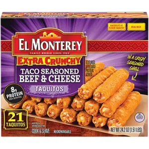 El Monterey Frozen Mexican Food Extra Crunchy Taquitos Taco Beef & Cheese 21 Count - 24.2 Oz