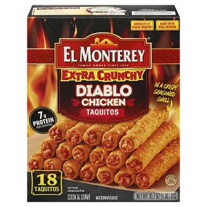 El Monterey Frozen Mexican Taquitos Extra Crunchy Diablo Chicken - 21 Count