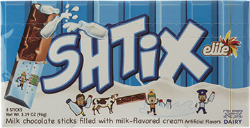 ELITE, SHTIX MILK CHOCOLATE STICKS FILLED WITH MILK-FLAVORED CREAM
