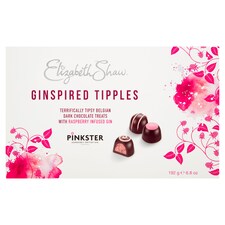 Belgian Dark Chocolate, Cocoa Mass, Sugar, Cocoa Butter, Emulsifier: Soya Lecithin, Natural Vanilla Flavouring, Glucose Syrup, Belgian White Chocolate, Whole Milk Powder, Pinkster Gin, Freeze-dried Raspberry Pieces, Raspberry Powder, Blackcurrant Powder, Freeze-dried Blackberry Pieces, Neutral Alcohol, Colour: Beetroot Red, Natural Flavourings (Raspberry, Lime, Thyme Oil, Lemon, Juniper Berry Oil, Rose With Other Natural Flavourings), Flavouring, Acid: Citric Acid, Dark Chocolate Contains: Cocoa Solids 55% Minimum