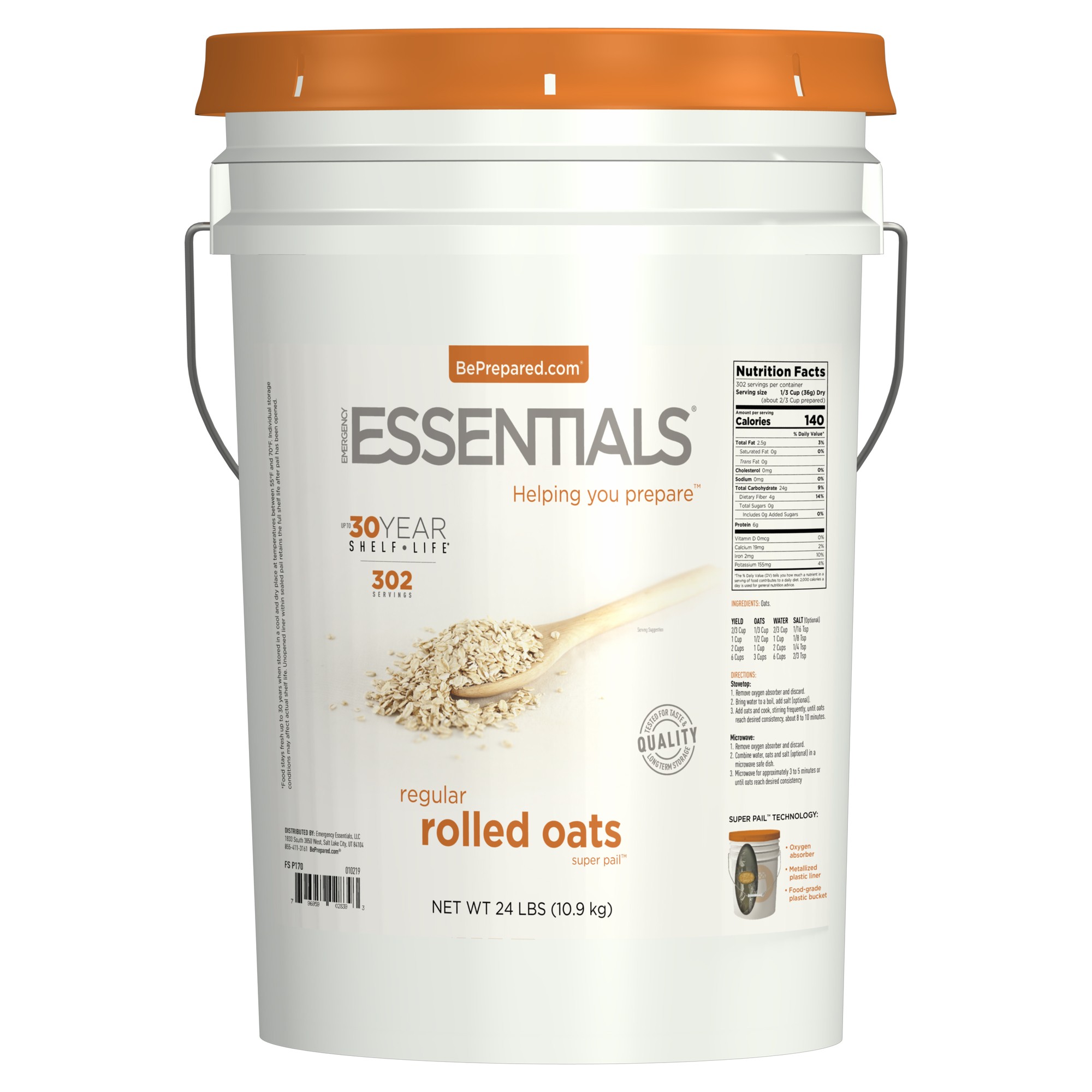 Emergency Essentials SuperPail Regular Rolled Oats, 24 lbs