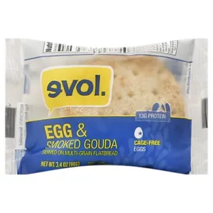 Evol Breakfast Sandwich with Egg and Smoked Gouda on Multigrain Flatbread, 3.3 oz (18 Count)