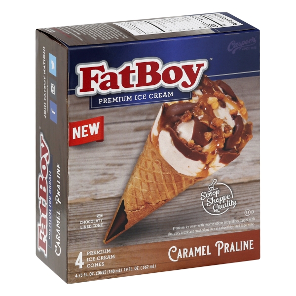 FatBoy Ice Cream Cones Premium Caramel Praline 4 Count - 4.75 Fl. Oz.