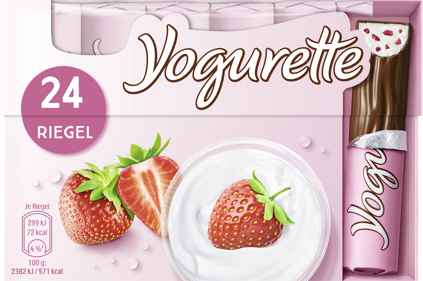 Skimmed Milk Yoghurt-strawberry Cream 49,5% (Sugar, Palm Oil, Dextrose, Skimmed Milk Yoghurtpow , Emulsifier Lecithin (Soy), Aroma), Full Milk Chocolate 35% (Sugar, Full Cream Milk Powder, Cocoa Butter, Cocoa Mass, Emulsifier Lecithin (Soya) , Vanillin), Dark Chocolate 10% (Sugar, Cocoa Mass, Cocoa Butter, Emulsifier Lecithin (Soja), Vanillin), Strawberry Granules 5,5% (Sugar, Strawberry Powder, Palm Oil)