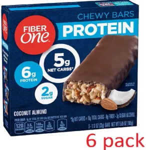 Fiber One Protein Bar, Coconut Almond Chewy Bars, 5 Count Fiber Bars,Pack of 6