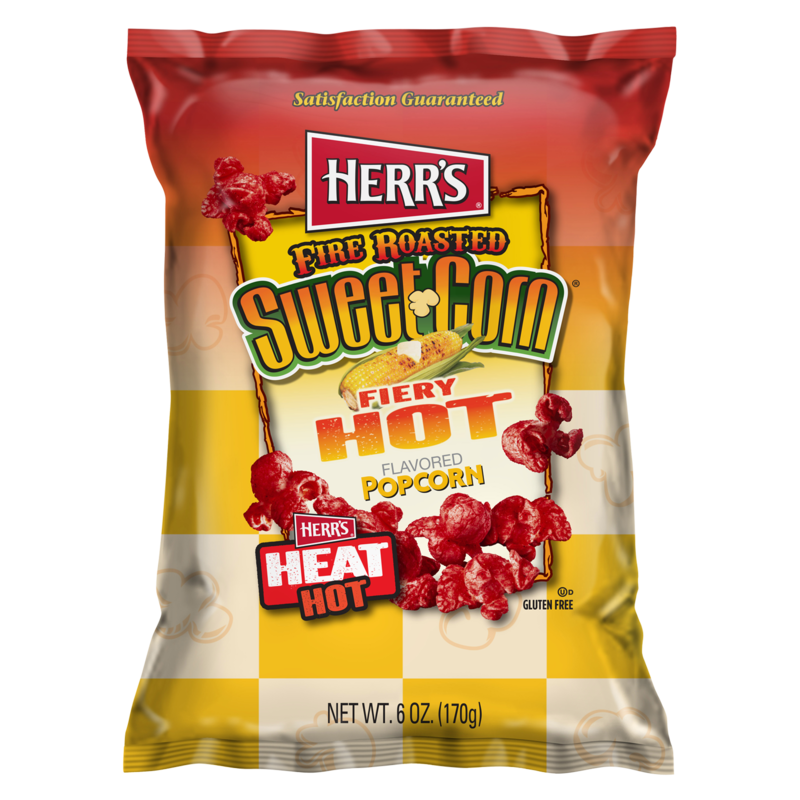 FIERY HOT FLAVORED FIRE ROASTED SWEET-CORN POPCORN, FIERY HOT