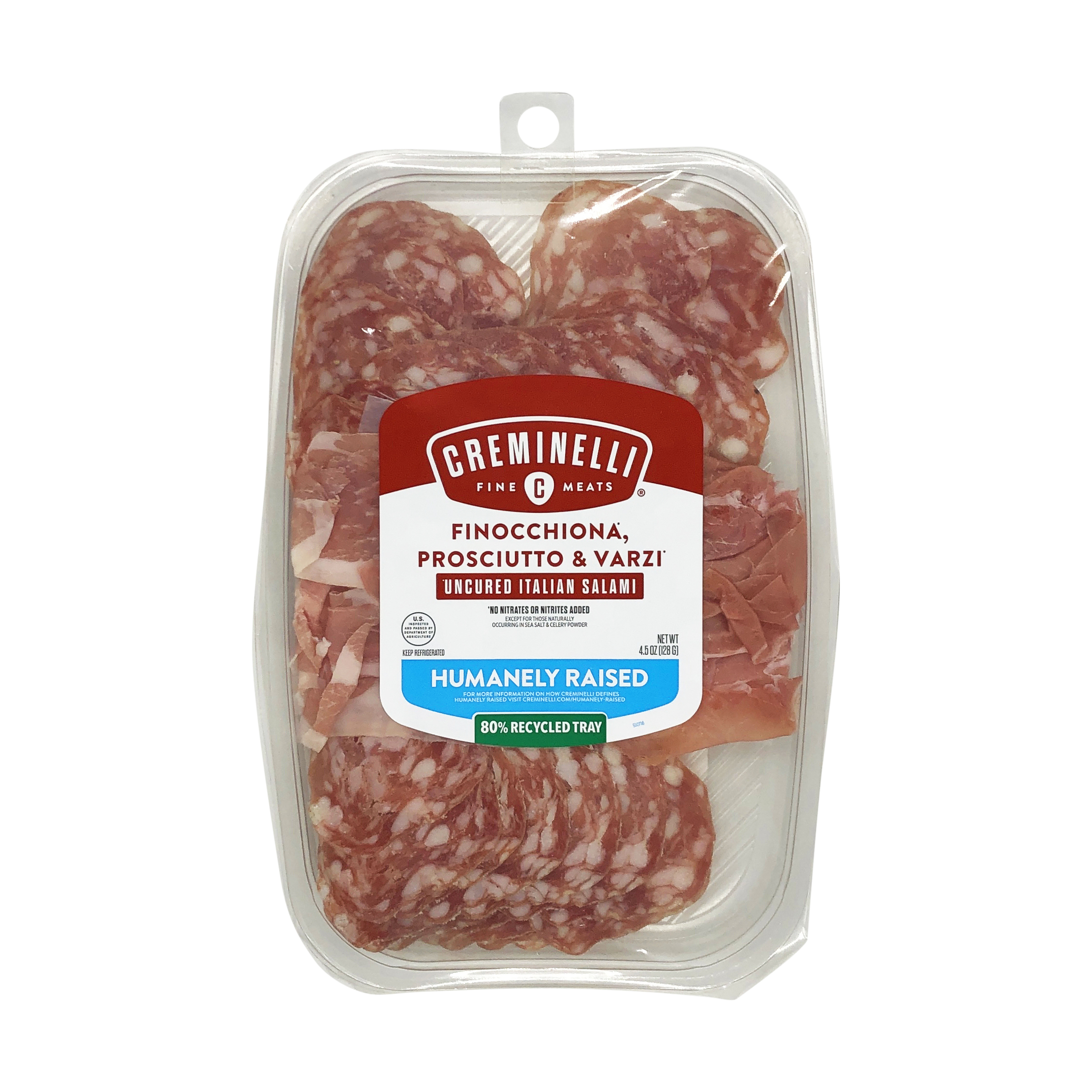 Finocchiona Uncured† Salami Ingredients: Pork, Salt, Natural Flavors, Organic Spices, Sugar, Organic Garlic, Starter Cultures Prosciutto Ingredients: Pork, Sea Salt Varzi Uncured† Salami Ingredients: Pork, Sea Salt, Natural Flavor, Sugar, Organic Spices, Organic Garlic, Starter Cultures