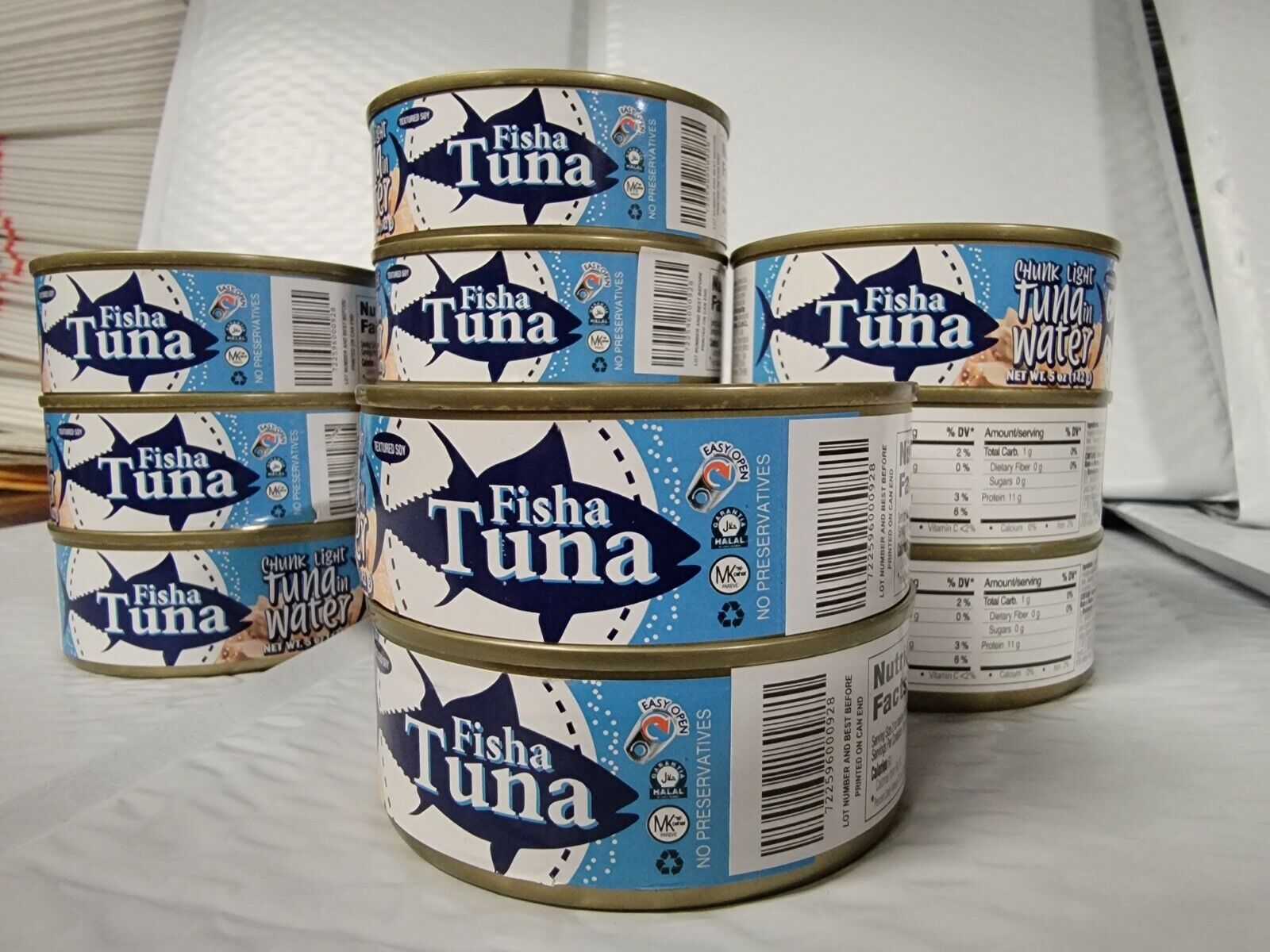 Tuna, Water ,textured Soy Protein Concentrate, Soy Fiber, Salt. Contains Fish (tuna), Soy