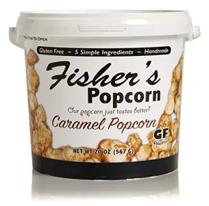 Fisher's Popcorn Caramel Popcorn, Gluten Free, 5 Simple Ingredients, Handmade, No Preservatives, No High Fructose Corn Syrup, Zero Trans Fat, 20oz Tub (1 Gallon)